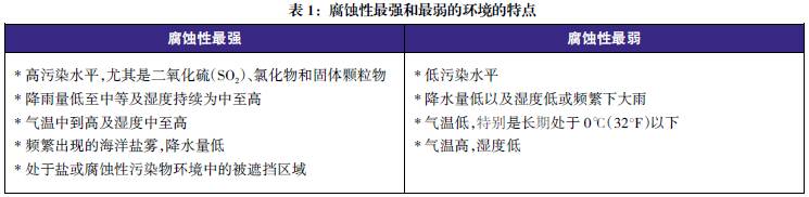 使用環(huán)境可分為鄉(xiāng)村、城市、工業(yè)或海洋環(huán)境。在每種環(huán)境中,都存在高、中、低水平的腐蝕風險,這些風險水平取決于降雨量、空氣溫度、污染和其它因素。在評估任何環(huán)境時,都要考慮所在區(qū)域的未來發(fā)展情況。